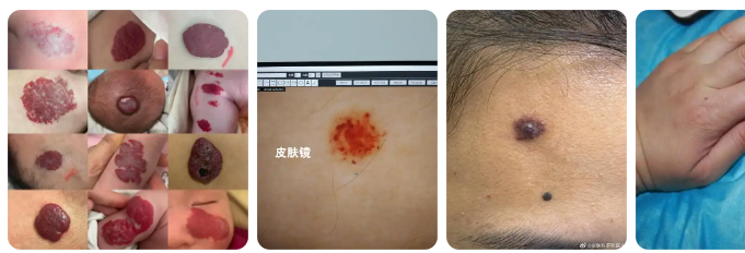 皮膚鏡可以放大觀察皮損的血管結(jié)構特征,有助于與其他皮膚病變鑒別。